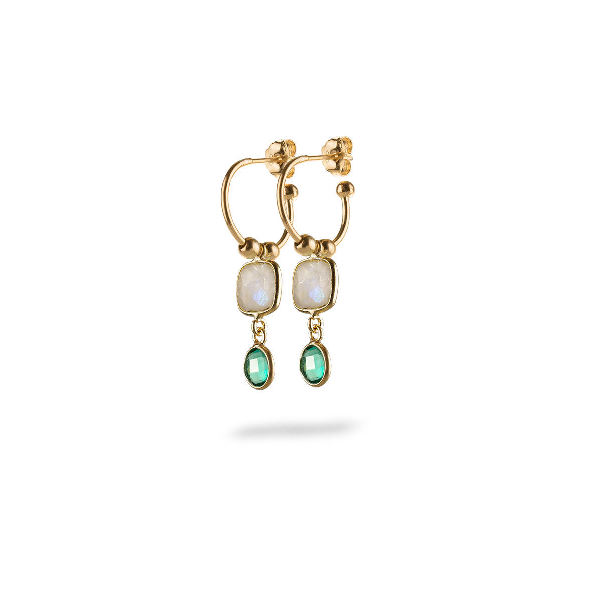 La Pietra di Luna è un silicato di potassio appartenente al gruppo dei Feldspati, una famiglia di minerali particolarmente nota per le sue gemme che presentano bellissimi fenomeni ottici, come, appunto, l’adularescenza, un particolare gioco di luce (simile ad un fascio lunare) dovuto ai riflessi interni alla pietra prodotti da inclusioni di albite.