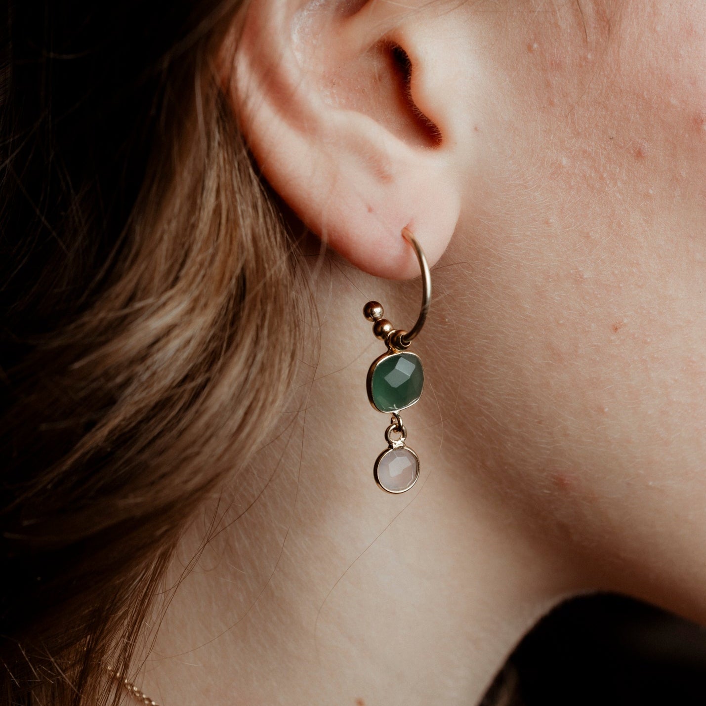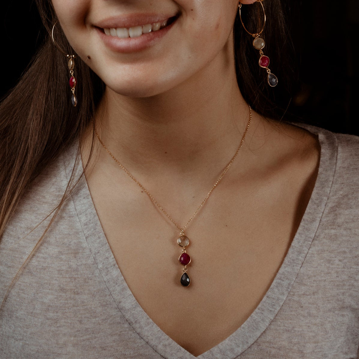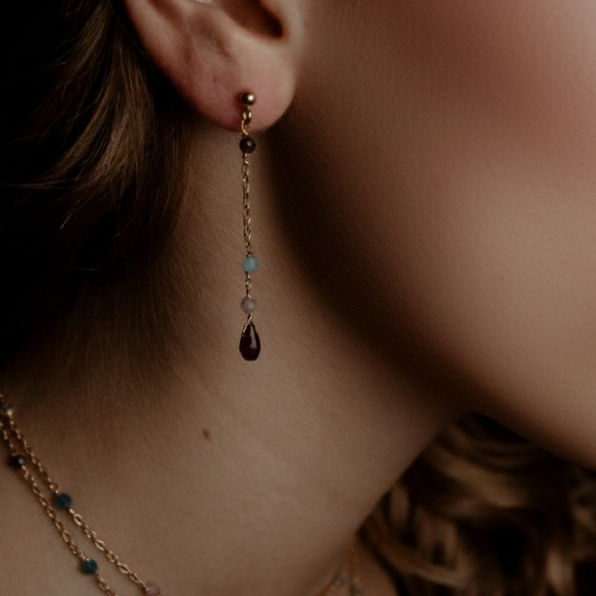 Coppia di orecchini 2 pietre e catenina