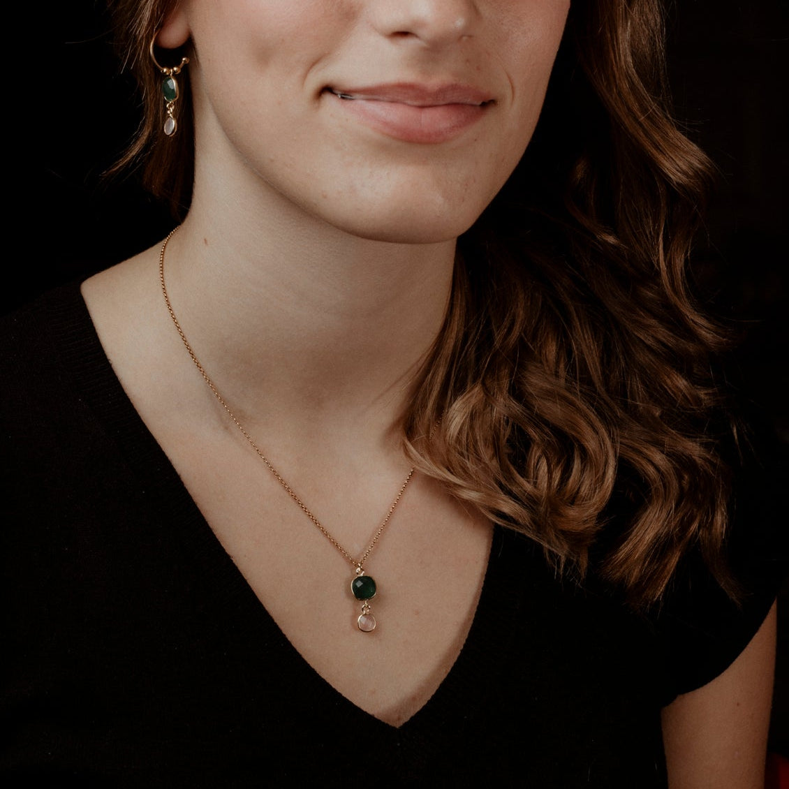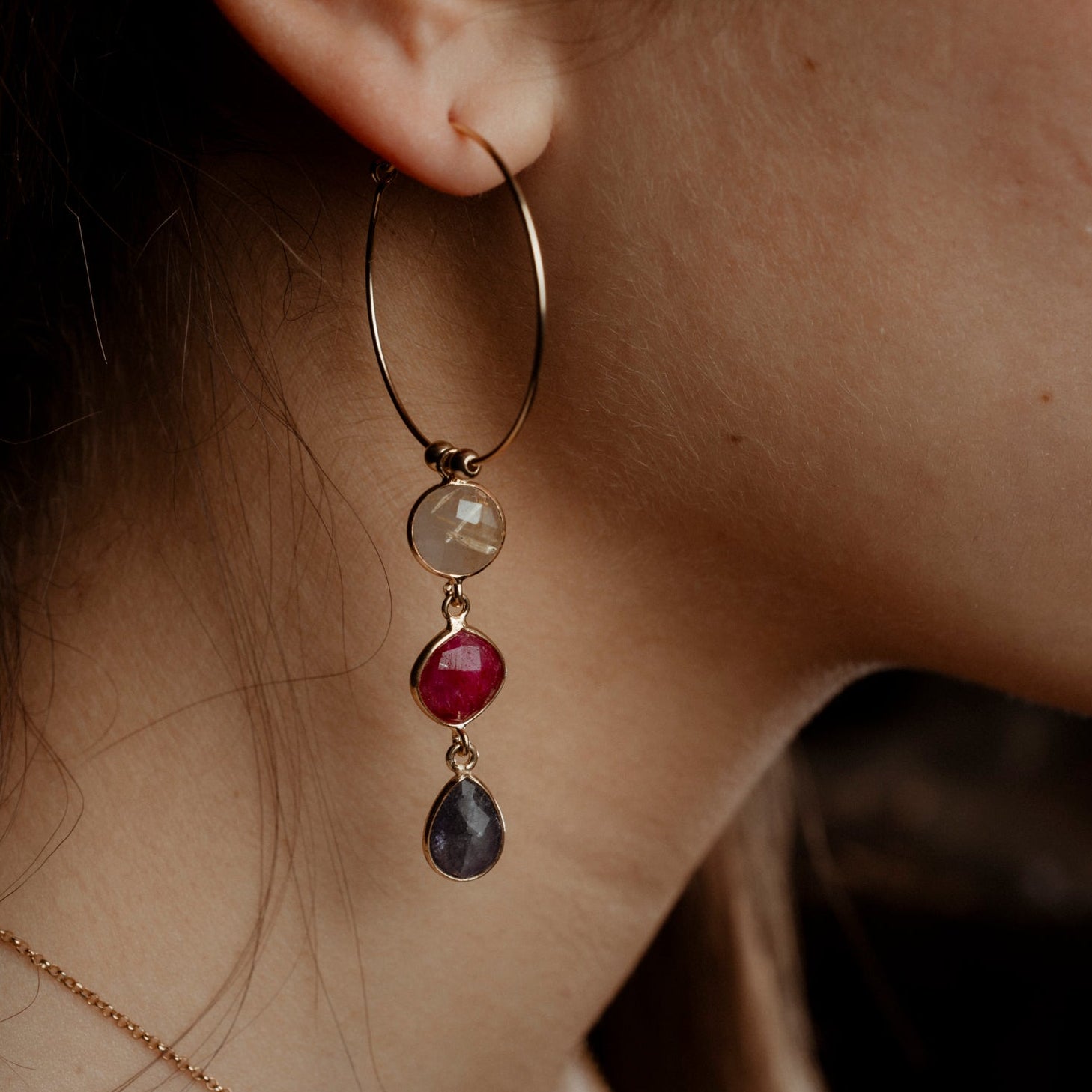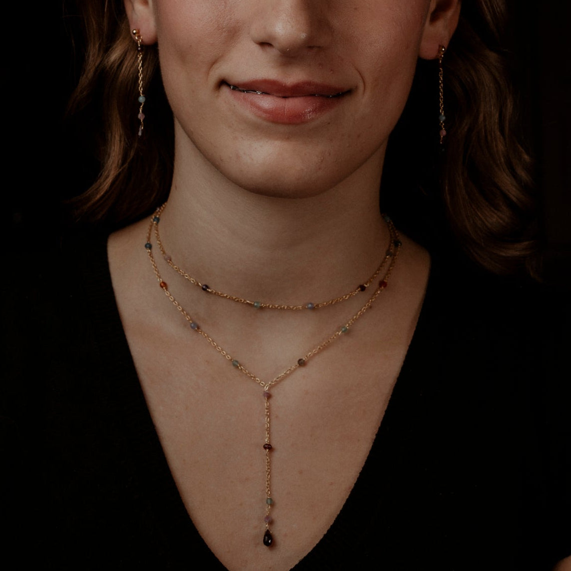 Coppia di orecchini 2 pietre e catenina